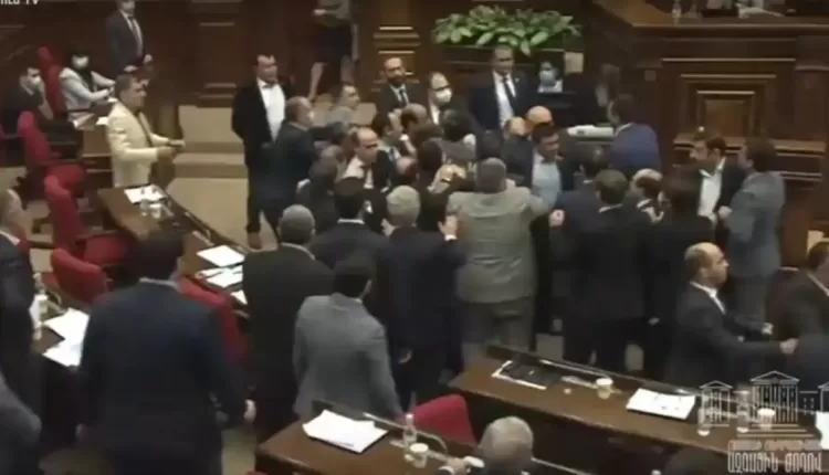 İctimairey.az Ermənistan mediyasına istinadən xəbər verir ki, bu gün səhər tezdən hakim qüvvə və müxalifət bloklarından olan deputatlar arasında gedən döyüşlər səbəbindən ölkənin qanunverici orqanının fəaliyyəti vaxtaşırı kəsilib.