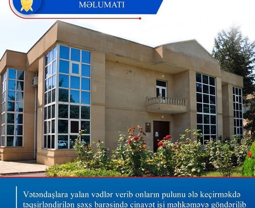 İctimairey.az Biləsuvar rayon prokurorluğunun məlumatına görə xəbər verir ki, “DOST İş Mərkəzi” MMC-də ictimai işlərə cəlb olunmuş Elman Nuriyevin özünü ƏƏSMN-nin tabeliyində Dövlət Məşğulluq Agentliyinin 14 saylı Ərazi Məşğulluq filialının Biləsuvar rayon Xidmət şöbəsinin işçisi kimi təqdim edib həmin agentliyin, habelə digər vəzifəli şəxslərlə öz “əlaqələri” vasitəsi ilə dövlət özünəməşğulluq proqramı çərçivəsində növbədənkənar qaydada dövlət hesabına mal-qara ilə təmin edəcəyi barədə yalan vədlər verməklə 38 nəfər şəxsin ümumilikdə 19 min manat məbləğində pul vəsaitini ələ keçirməsinə əsaslı şübhələr müəyyən edilmişdir.