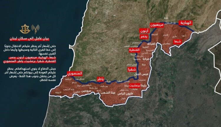 İsrail ordusu Livanın cənub bölgəsindəki bəzi yaşayış məntəqələrinə girişin qadağan edildiyini göstərən xəritə yayımlayıb.