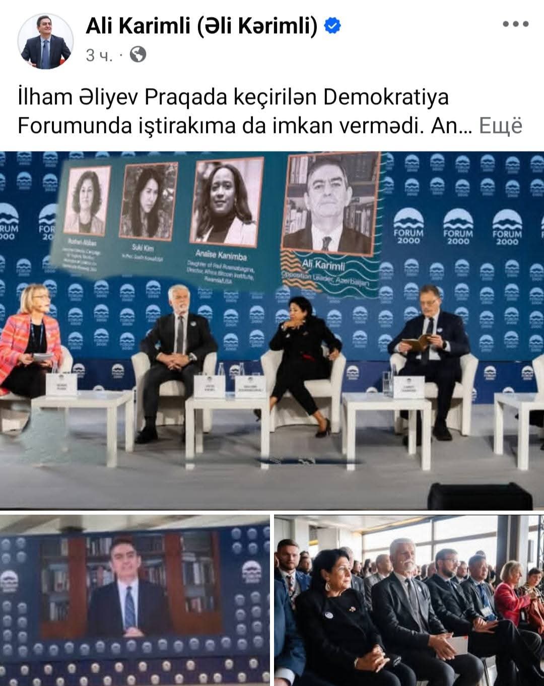 “Bu gün Praqada, Forum 2000 tədbirində Əli Kərimlinin cəmi 5 dəqiqəlik videoçıxışı oldu.